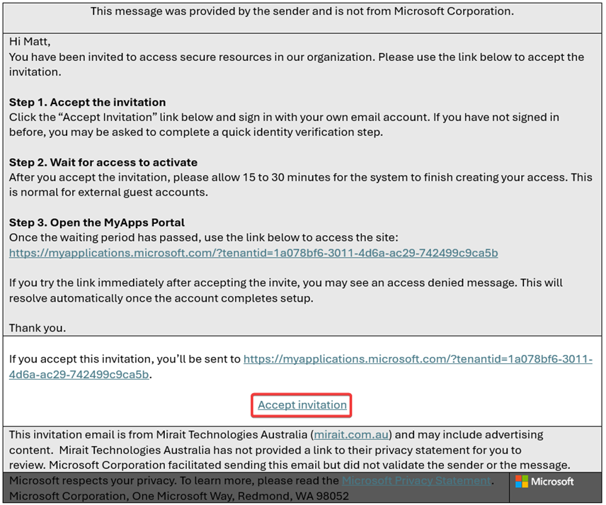 - Please review the information provided within the email and when ready, click Accept Invitation