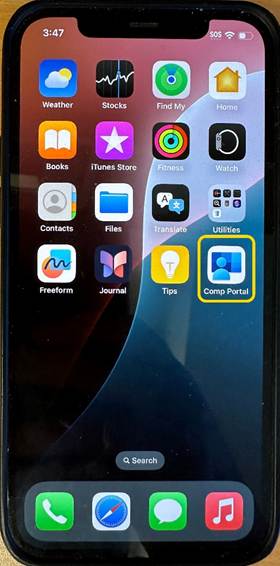 Open the “Comp Portal” app The Company Portal is where all the approved Apps will be available. |